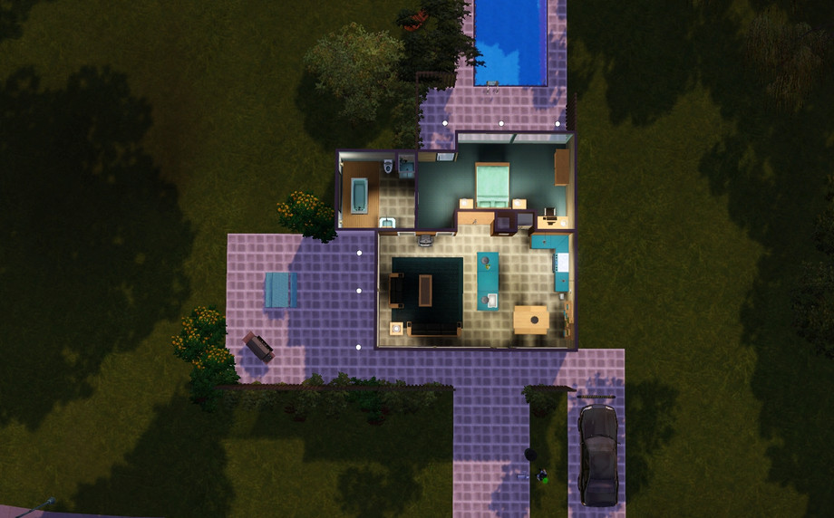 Simply Simplicity is just what it says it is. Your Sim, being single or just the two of you will like the simplicity of this house. One bedroom, one bathroom. A modern kitchen ...AND.... *drum roll*... a POOL!