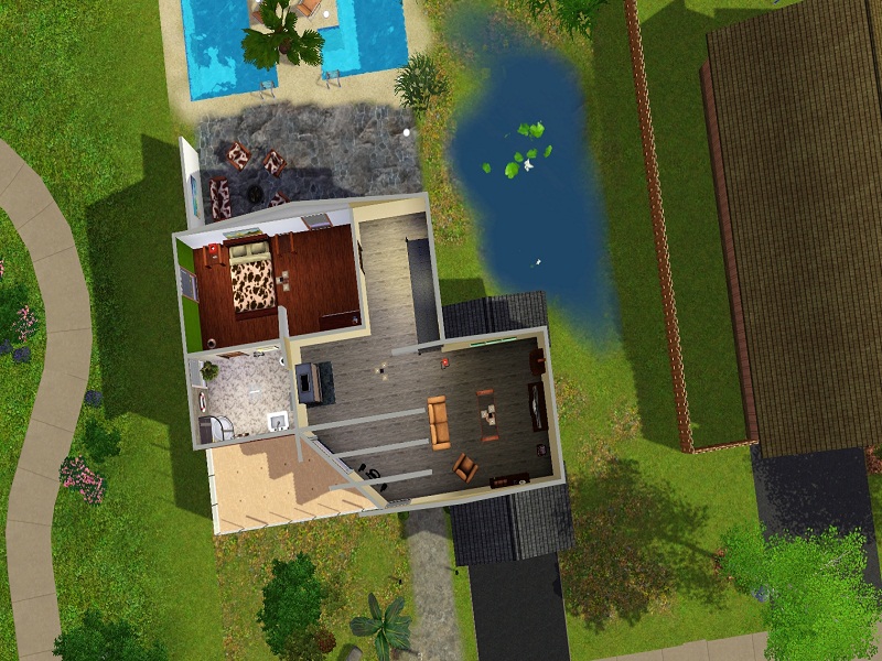 A little starter House, which is designed for a couple. It has a beautiful swimming pool and everything your sims need to have a good time! This house contains no CC!