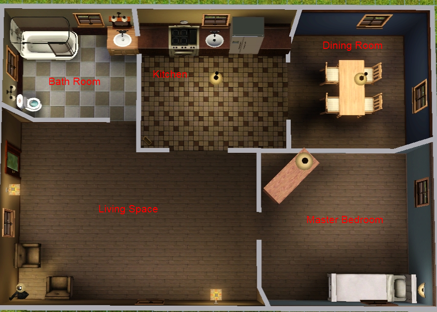 A small starter home that costs just under $16,500. It has one Bedroom and 1 bathroom. It's built on a 20x30 lot so there is some room for outward expansion. Let this be a starting block on your sim's long adventure.