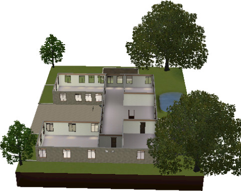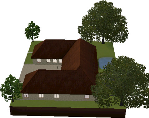 Another blank canvas for you. This two bedroom two bath is perfect for those Sims that want mansion style living with a small price. This custom home has one bedroom upstairs with one bath. Second bath and bedroom are in the basement with room for a study. Also has a garden on the side and possibility for two more gardens. Also has a pond for you to stock with fish to go fishing.