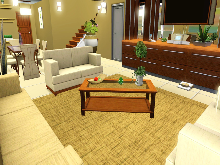 A beautiful modern house with two floors ... Decorated in earth tones inside ...