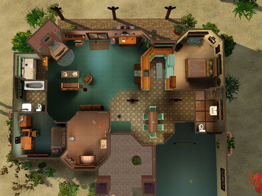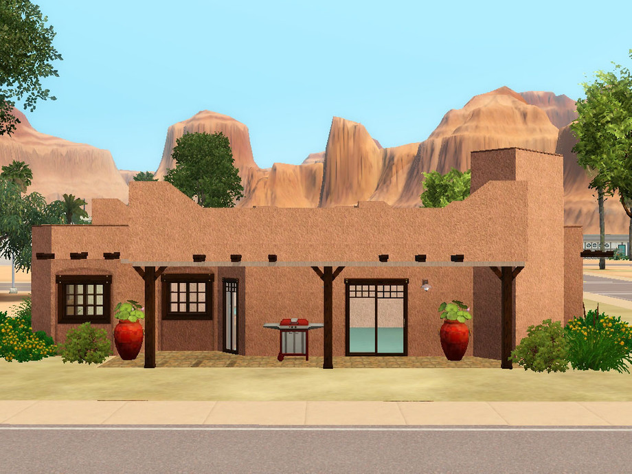A 3 bedroom/2 bath Southwestern Adobe style house, built in Lucky Palms. Small to medium sized and only one story for easy Sim living! Casually furnished with comfortable and vibrant colors. Furnished $68,997, unfurnished $48,404. No custom content. Enjoy! ~Brighten11