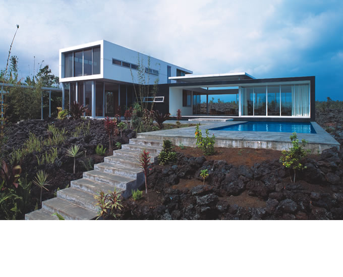 The inspiration for this house came from a Hawaian house that was built on lavaflow from nearby active volcano.
