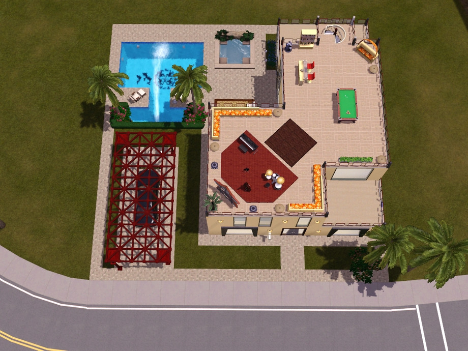 This lot was built with Showtime, it contains items from Showtime, Outdoor Living, World Adventures, Late Night, Pets,and it can be placed on a 25x25 (or bigger) lot in any town. If placed in Showtime it's on the 255 Starry Way Lot,