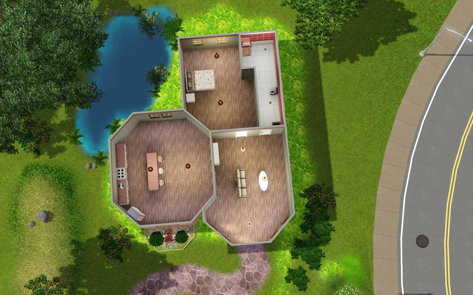 Sweet starter for your simmies:D It has a kitchen with dining area,livingroom ,bedroom and a red bathroom!