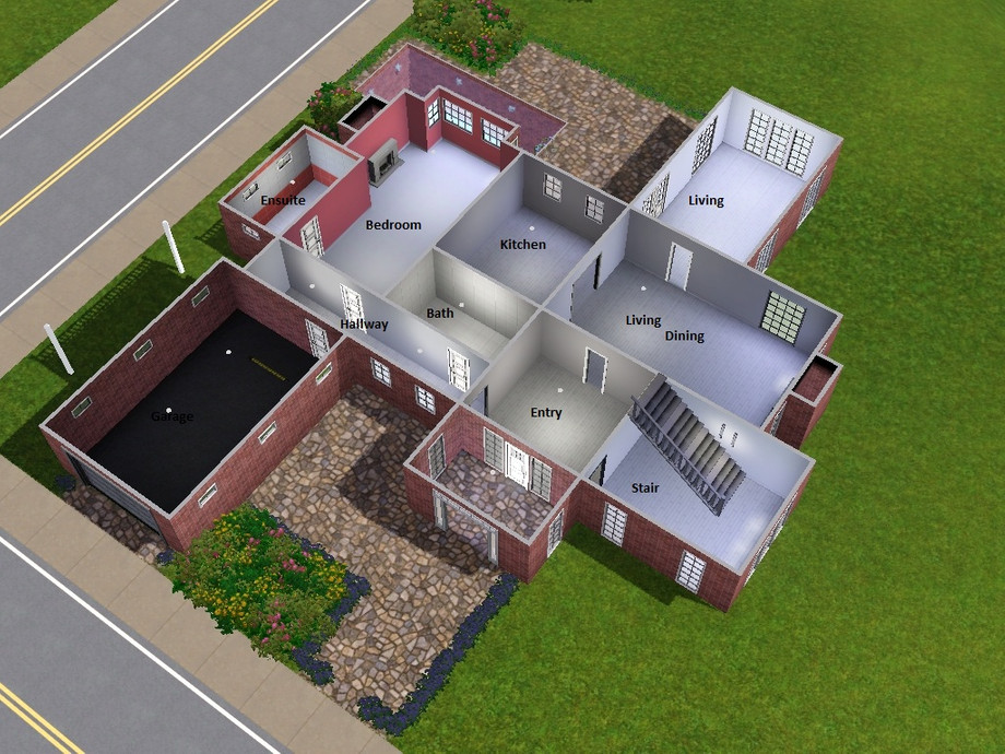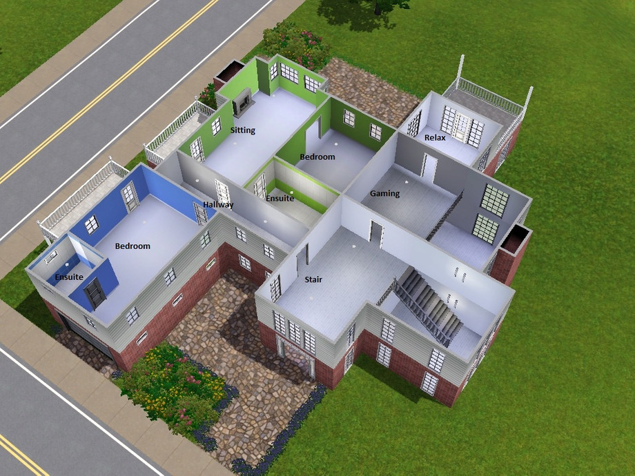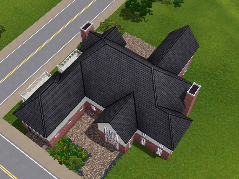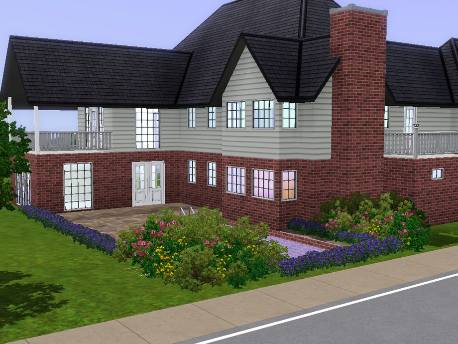 A large house (mansion) for those sims that love space and large rooms. It also has a connected garage and an outside pool.