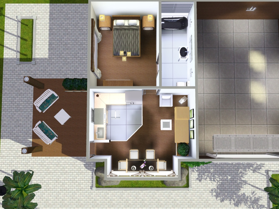 One bedroom modern house for single sim or for young couple. Nice and small. I'm sure your Sim will enjoy it. Have fun.