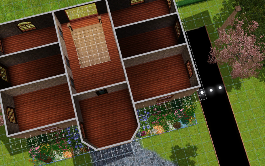 This sweet house is decorated all in wood for custom content. It has a beautiful entrance and a covered parking spot. There's a gap above the door for a picture (see recommended items) It has 6 small bedrooms and one large however these could be changed into another (lot of) room(s) if wanted. Downstairs there is a small bathroom. A large living, dining and kitchen. Outside in the back is a large fenced in garden with a small I shaped pool.