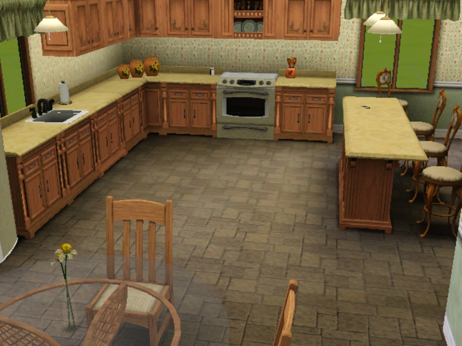 Beautiful sunny yellow home for you and your sims. Family home with three bedrooms and two baths, nice front porch to sit and relax.
