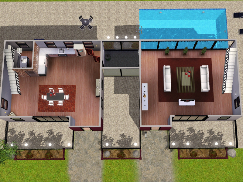 Sims 3 — Sunset by elena99e2 — Fresh and modern with a cosmopolitan vibe. Fully decorated using wood, metal and stone.