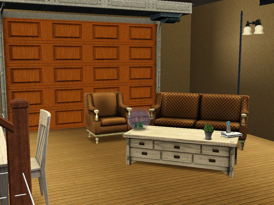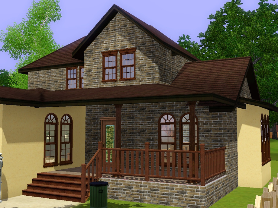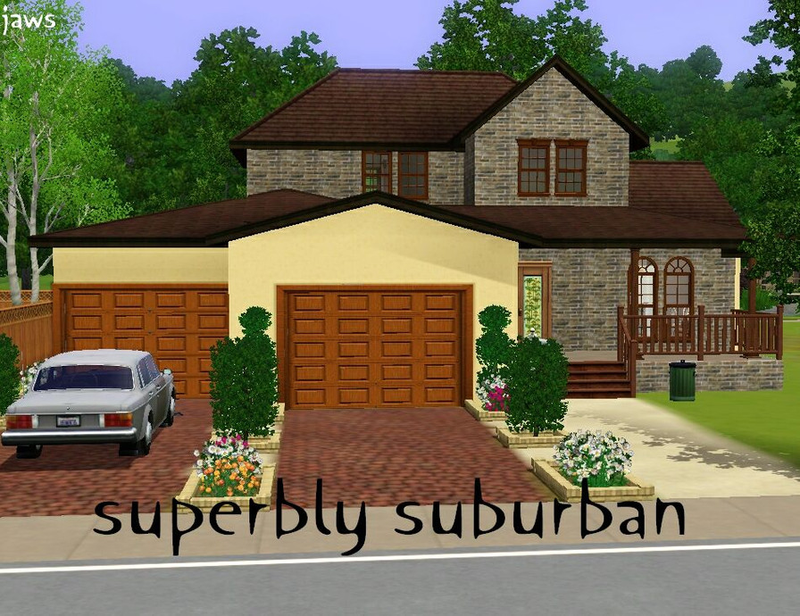 A nice, small (3 bedroom, 2 bathroom) suburban home for family sims! Split-level garage and living room. Upstairs unfurnished. =D Thanks to cyclonesue for her weathered brick texture!