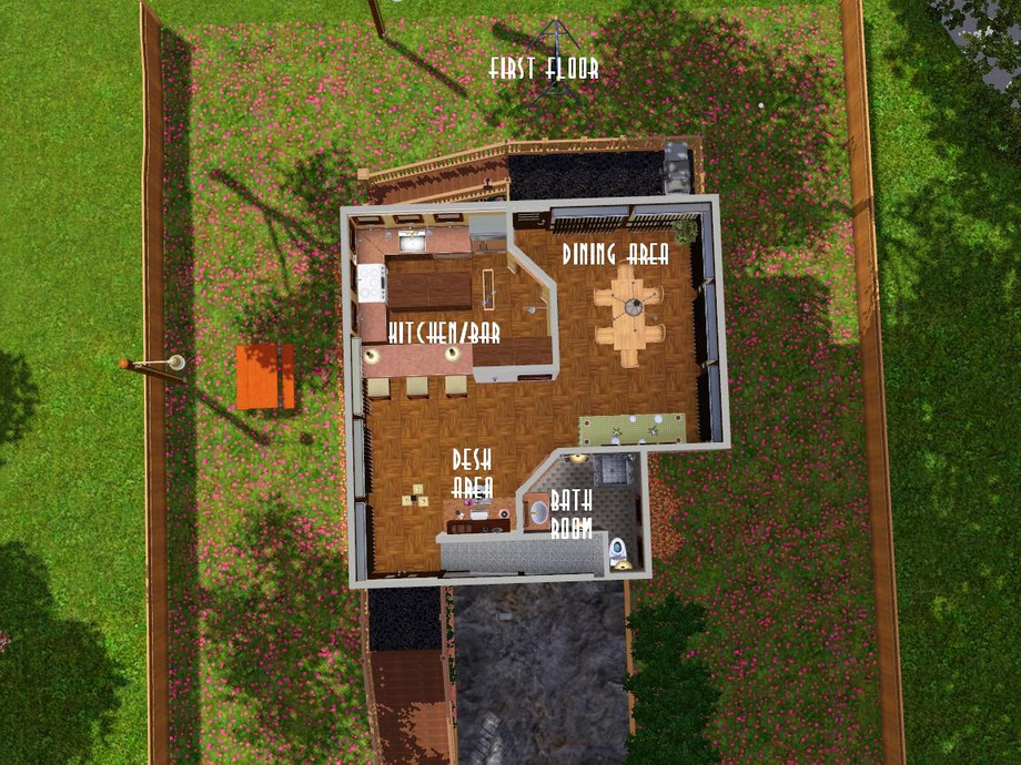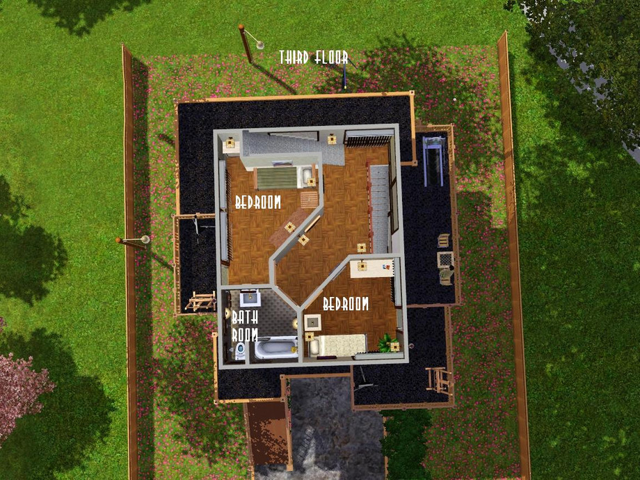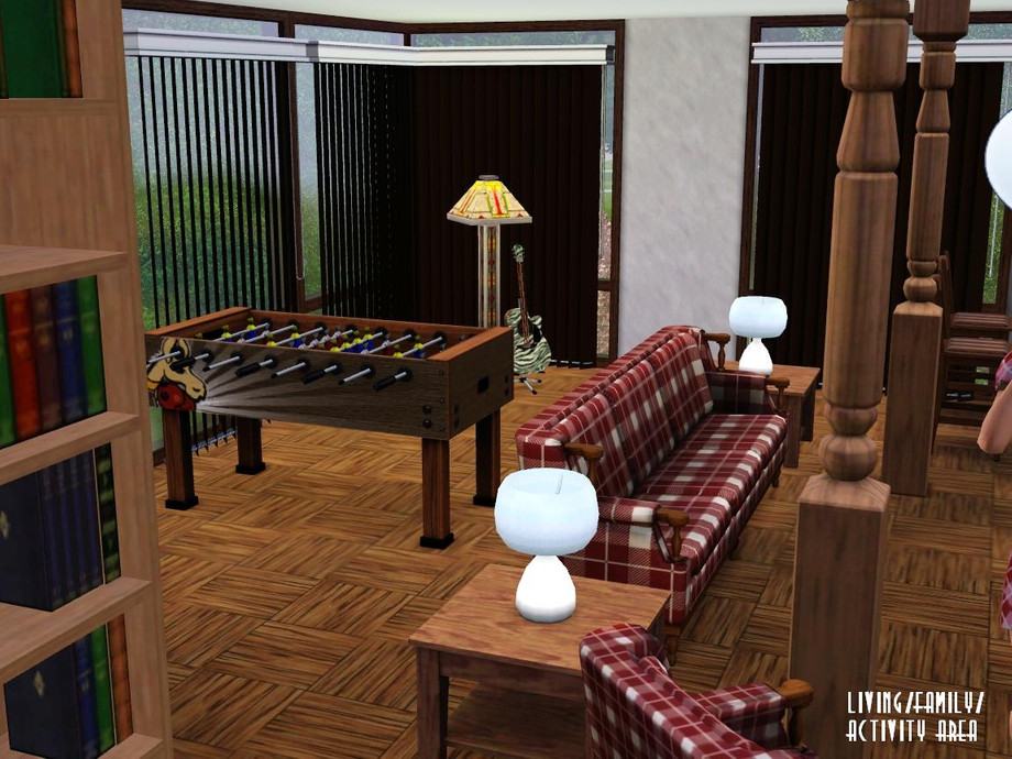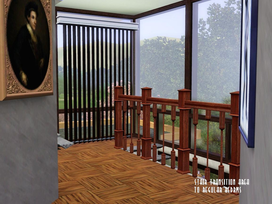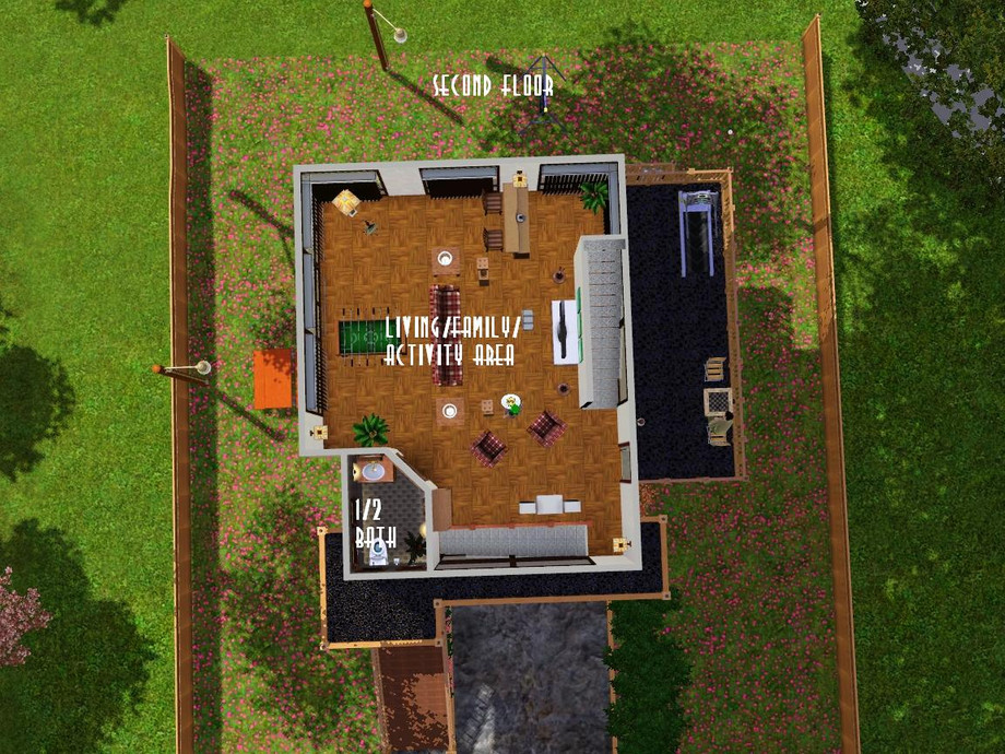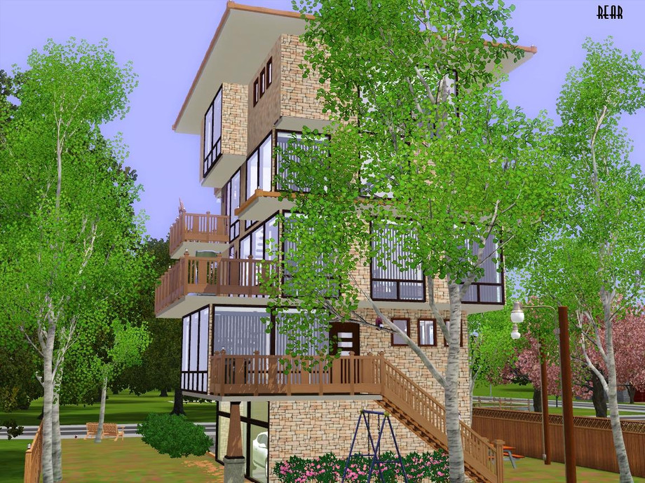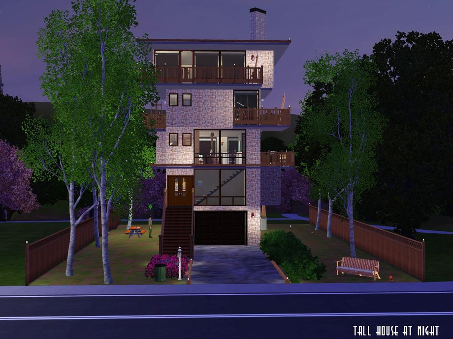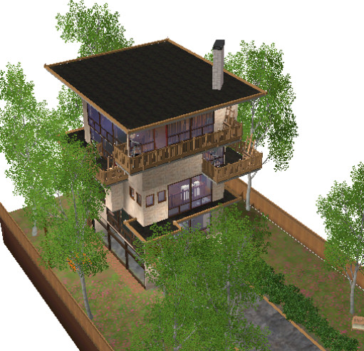 Designed and built specifically for a narrow lot (mostly near the town), this 'lanky' house more than fits it! Ready for your Sim family or roomies, though they'll have to climb some steps to get around. Hey, they'll have to get up and down somehow, right? Enjoy!