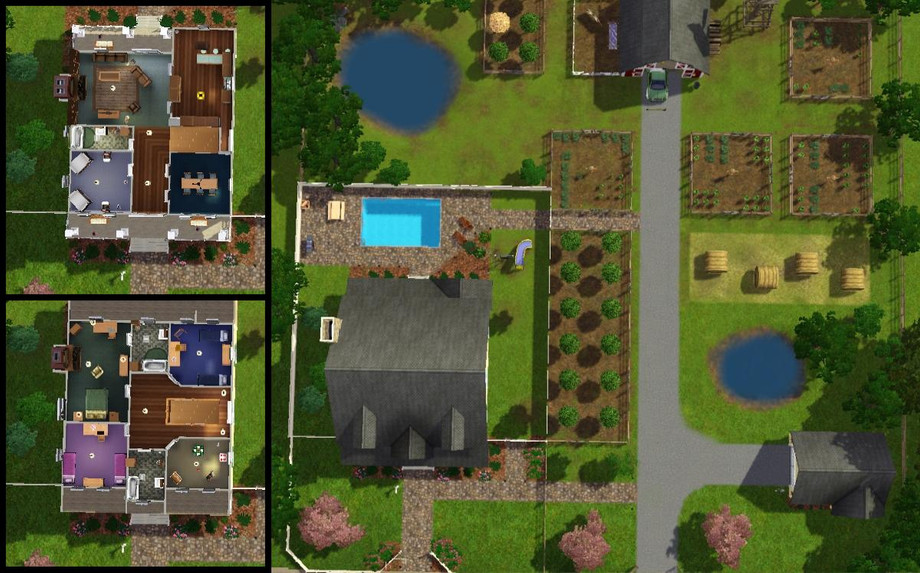 This large home has 5 bedrooms and 3 baths. The farm is ready for experienced farmers to move in and take over the daily chores. It is a great place for a sim to raise a large family.