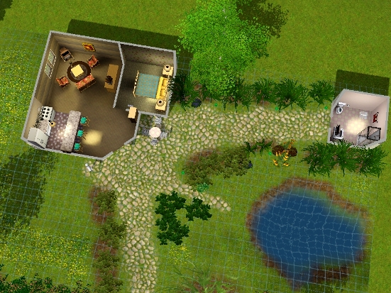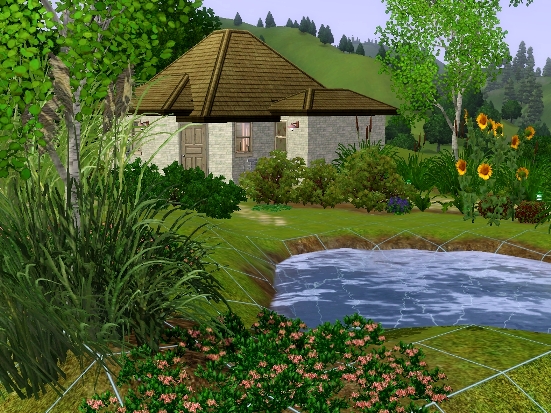Very intimate starter with cosy garden. One bedroom, one exterior bathroom. Pond.