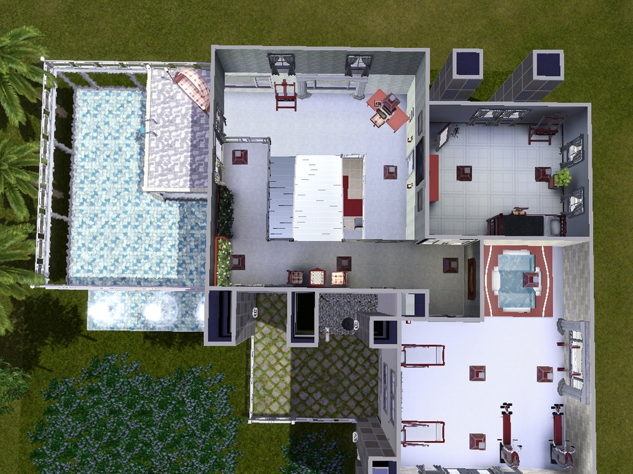 Required: The Sims 3 base game, High End Loft Stuff, Town Life Stuff, Generations, Showtime, Pets, Master Suite Stuff. Cheat used: 'moveobjects on' and 'constrainfloorelevation true/false'.