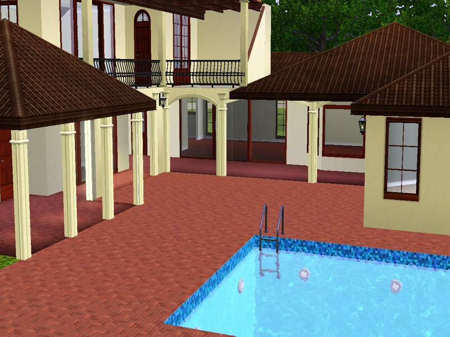 I love this Spanish style home and so will your sims family. This home features 4 BR and 5 BA. Master wing on the main level. Living, kitchen, and office space on main. Two additional bedrooms on the upper level with deck. There is tons of entertaining space for those sims pool parties.