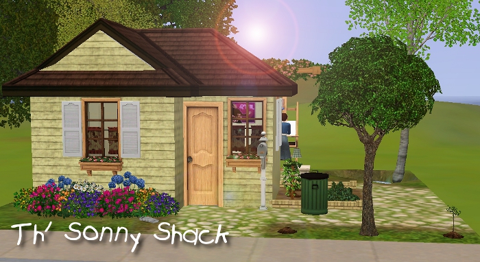 Are your sims broke? Did their husband or wife kick them out of the house, leaving them nowhere to go and penniless to boot? Did your teen sim's parents just die, leaving them without a place to call home? Well, look no further! Th' Sonny Shack is exactly that - sun-drenched, sun-bleached, and gorgeous! It doesn't have a bedroom, or much of anything else, really. The previous owner used this as a garden shed, but decided it'd be worth some money, so he fixed it up and tacked on a bathroom. As such, the shack is in a studio layout and the living room is... well, it's outside. Hey! Just be glad the bathroom isn't outside, too!