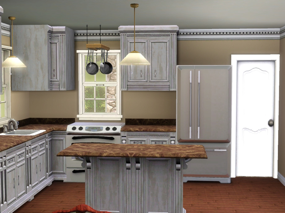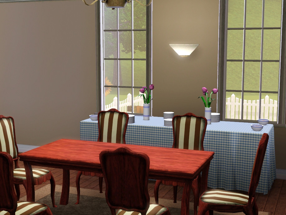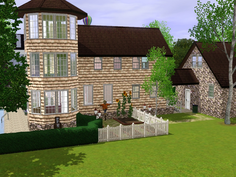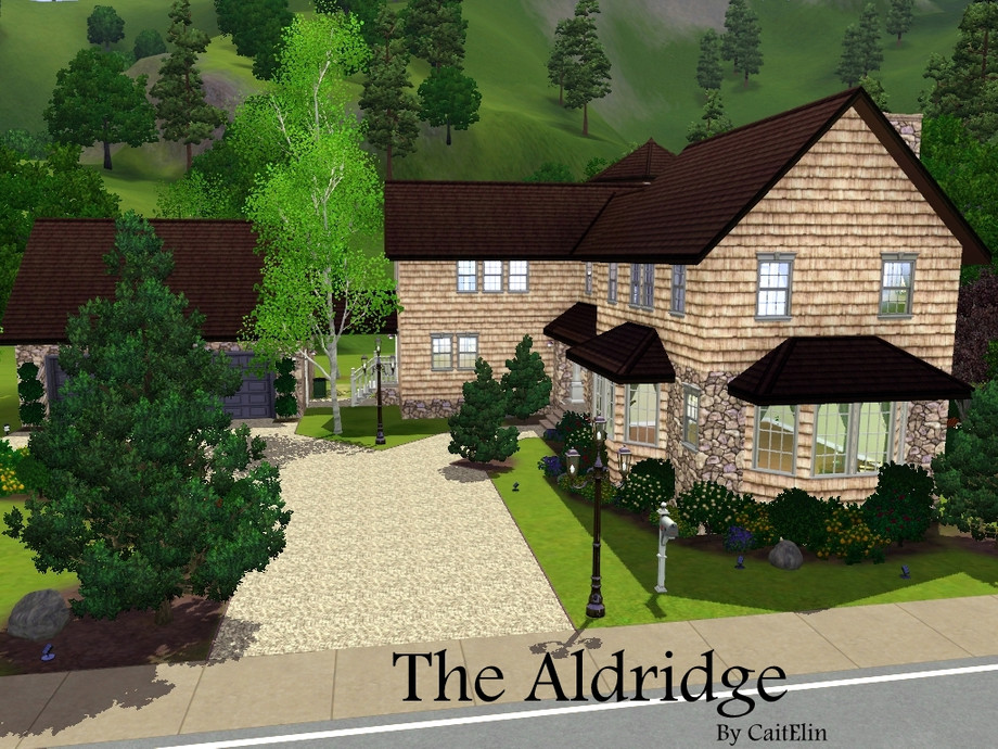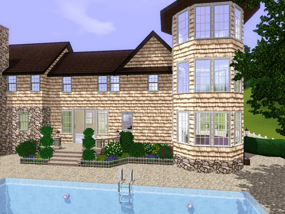 A lovely shingled and stone home ready to be moved into The Aldridge has three bedrooms and two bathrooms with an office and a playroom perfect for the small ones in the house. The exterior is fully landscaped and even has a small kitchen garden for those Sims with a green thumb, or maybe the opposite. Outside there is also a pool and a few chairs to enjoy the sunlight.