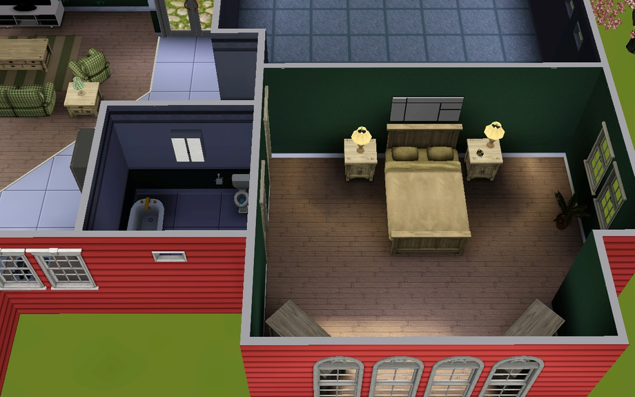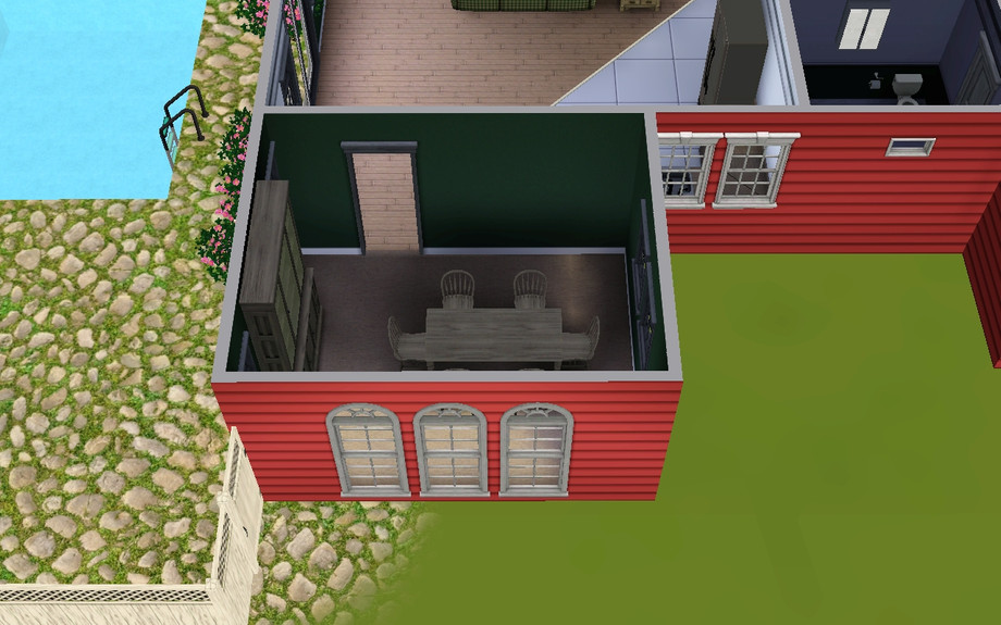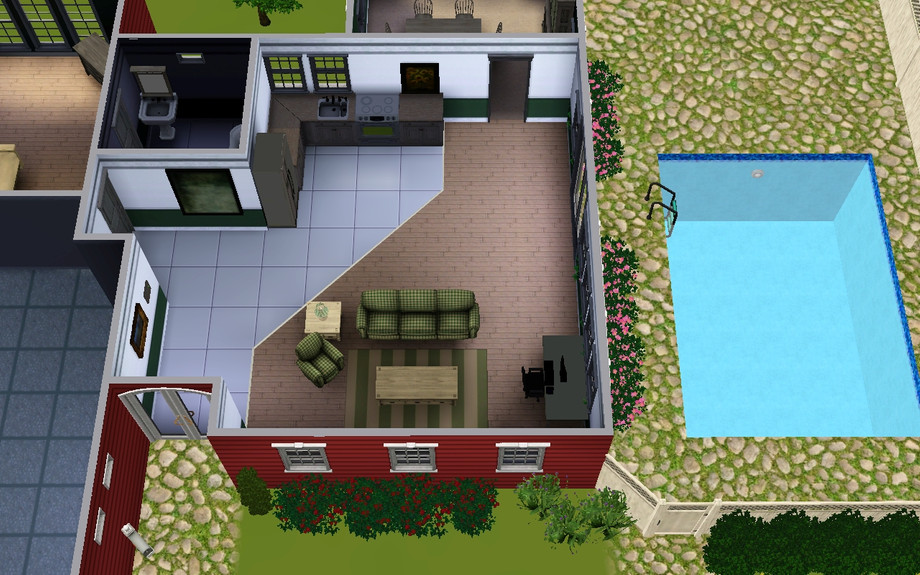 This fully furnished cute little one bedroom home includes a master suite, a large garage, a living room with an office space, a kitchen, tiled foyer, a formal dining room, and a pool and patio in the side yard. It has an open floorplan and is perfect for a single sim or a young couple!