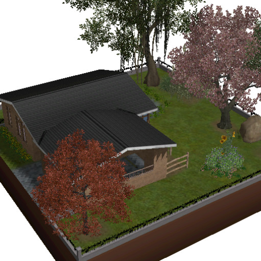 You look for a house ? The Cedar Leaf is a nice starter for a great price! (15 000 simflouz;, it isn't very cheap ?) It includes just the necessary: a kitchen, a living room, a bathroom and a bedroom, a carport, a kitchen garden and a terrace in the garden.