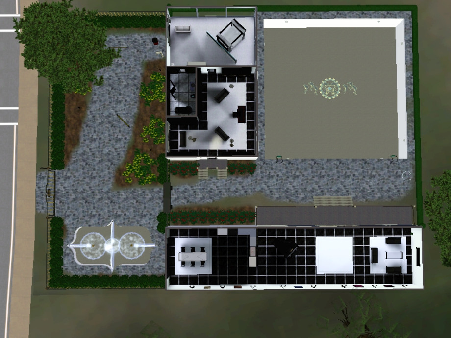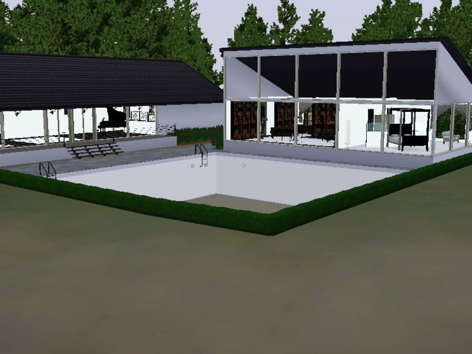 A one bedroom, one bathroom property set over two buildings. Perfect for any celebrity Sim as it is the very meaning of privacy. Double gated for extra protection, the property not only has a huge pool and feature fountain. It has a library and an open plan entertaining area. The bedroom is situated to take in the most of the panoramic views over the bay and town. Ideal for 272 Windsor Drive in Bridgeport. Made by Milii454@TSR.
