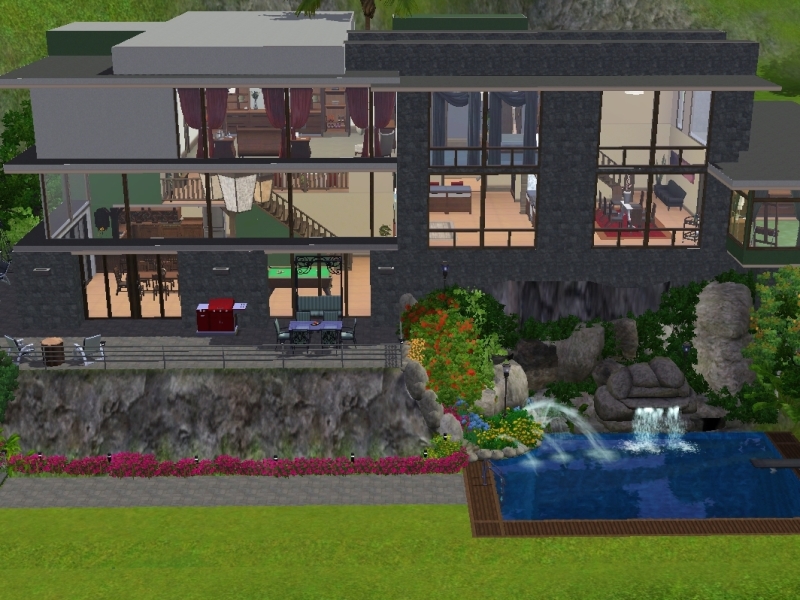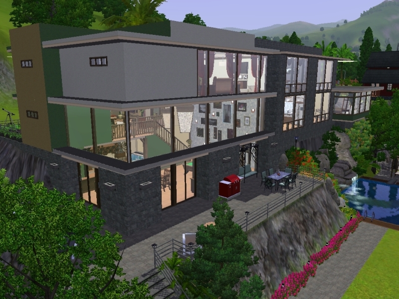 Built on the edge of a hill, this home was not confined to the hills. It is an ideal home for sims social and youth, or for those who prefer the warmth of a house made of wood and stone.