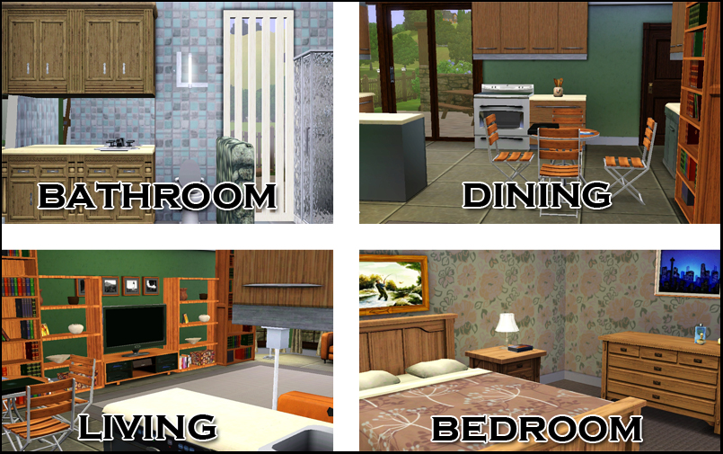 This two bedroom english suburban home features an open plan kitchen/dining/living room with one large bathroom encompassing shower, etc. The upstairs consists of two bedrooms although one is currently being used as an office and there is room for expansion. The home features an ample back garden and room out front for two cars. Perfect for your retiring sims or single sims looking for a place where they can get artistic. Some items (free) may be downloadable from thesimsresource. NO ADDITIONAL DOWNLOADS ARE REQUIRED FOR THE LOT TO WORK. Just find yourself some good ingame replacements.