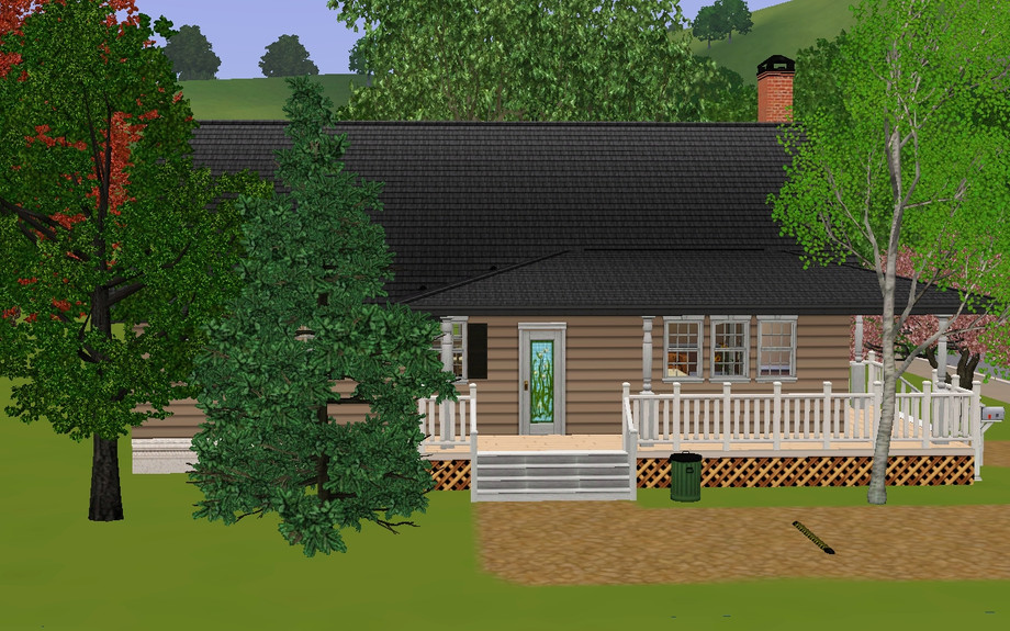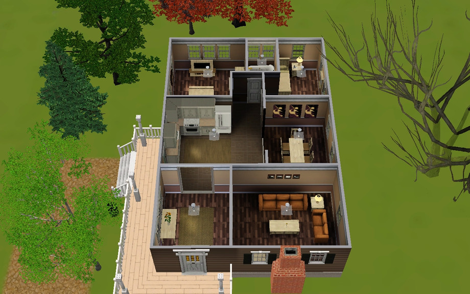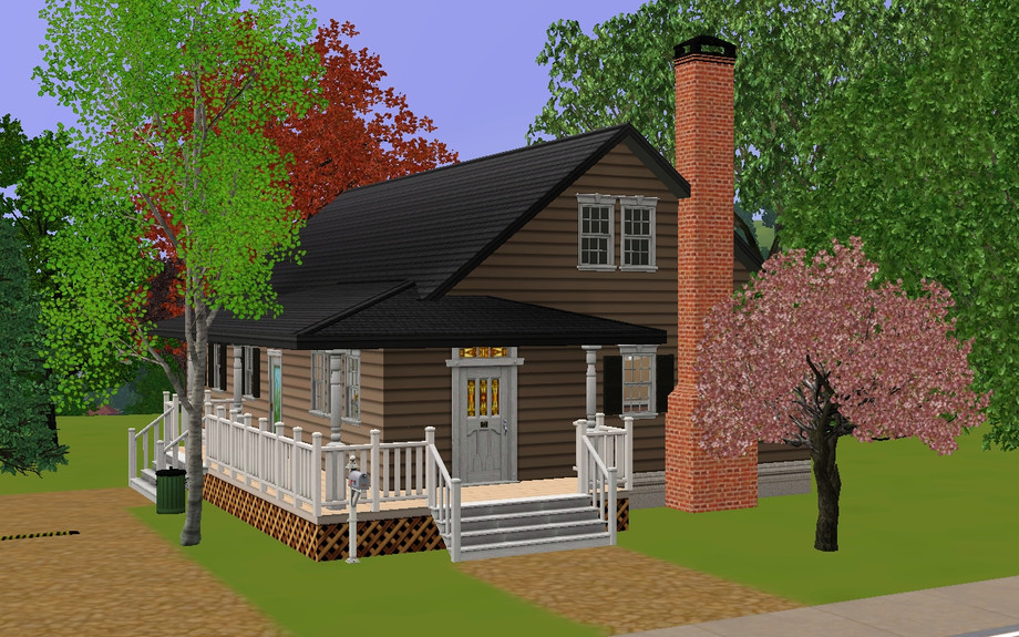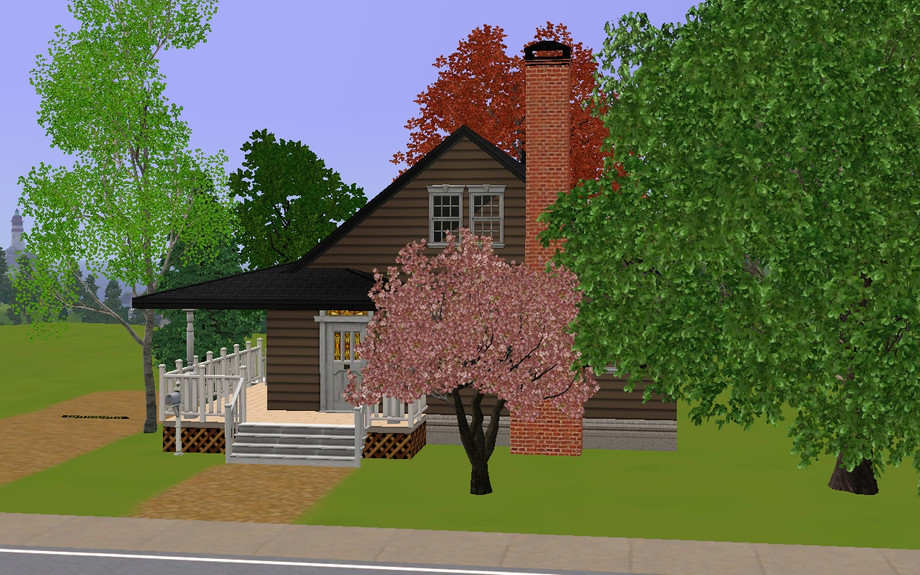This cute little ranch style (ish) home is wonderful for a small, small family, or a young couple, an old couple, or even a single sim! It is fully furnished, and includes a formal foyer, a living room with a fireplace, a large kitchen, a formal dining room, two bedrooms, and one bathroom. It also has a small wrap around porch, and a driveway, and even some space to expand!