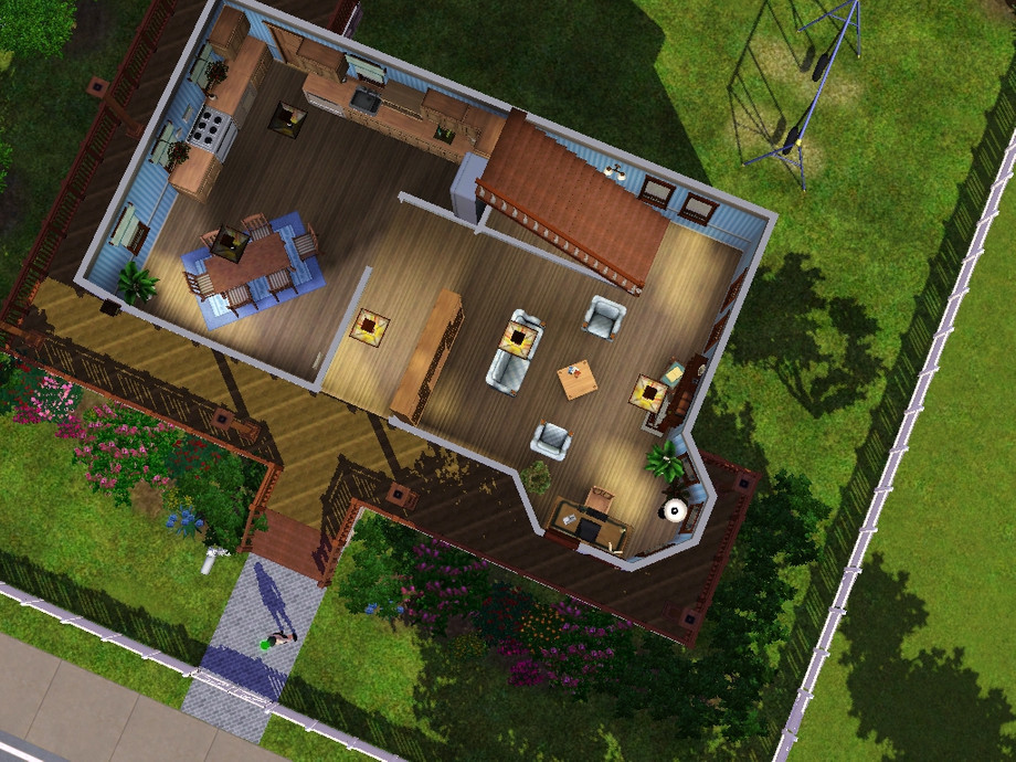 This three bed, two bed home has a full 'eat- in' kitchen and living room on the man floor. A spacious well maintained front and back garden with room to grow. This is a family home any sim would love.