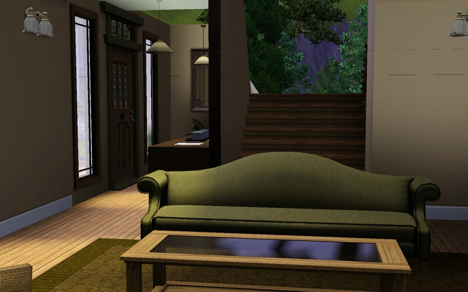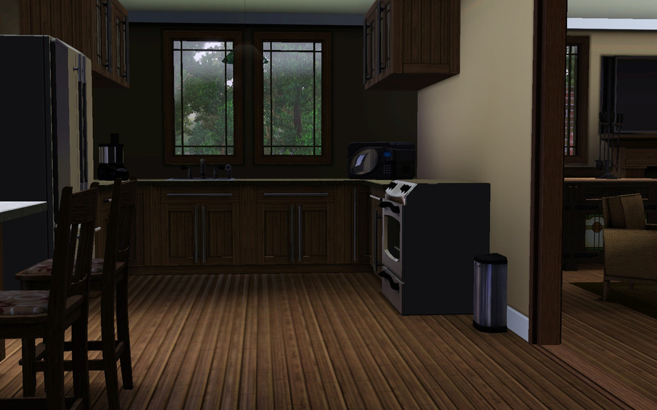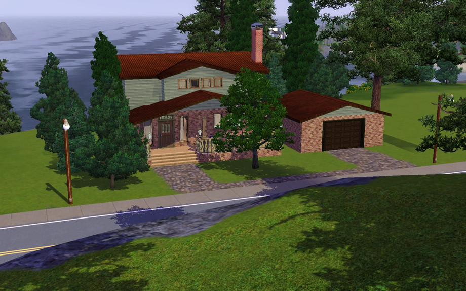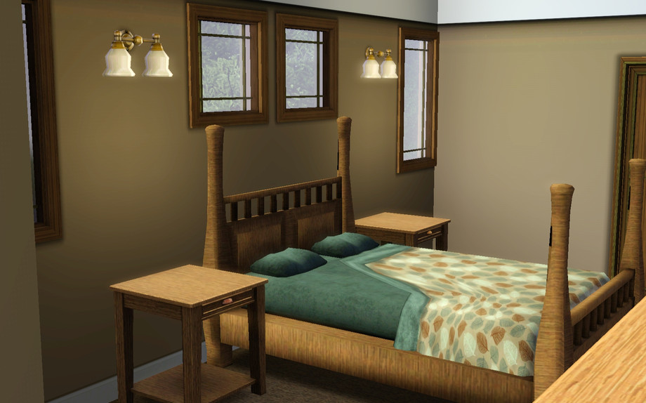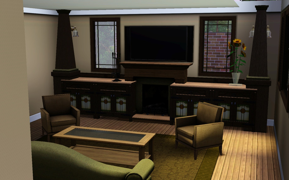 A spacious Craftsman style Bungalow for your Sims! 2 Bedroom 2.5 Bath plus a Den. Features living room with fireplace and built ins, large front porch, detached garage, and split level stairs. Enjoy!