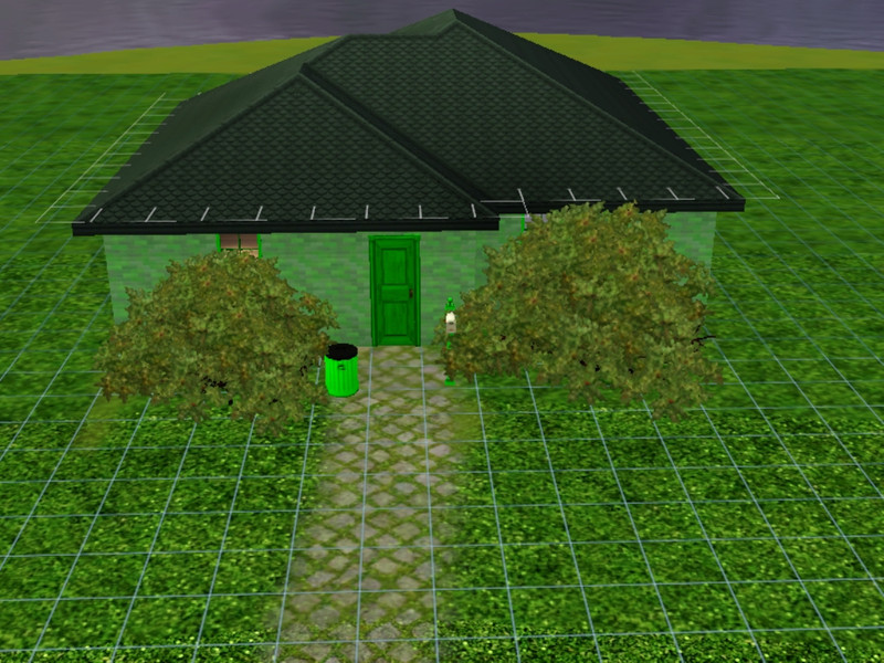 The GreenHouse comes fully furnished...in green! This house accomodates 3 Sims to their basic needs. Includes 2 bedrooms, one bathroom, a kitchen/living room/dining room area and a spacy yard for further extensions. Affordable for when your Sims first move in. Check out the other Rainbow Houses in this series.