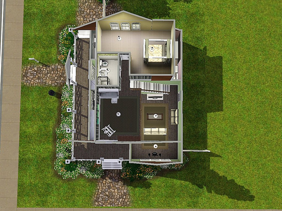 This beautiful little home has an open concept living area complete with 2 very spacious bedrooms and 2 full size baths. There is also a parking pad attached with this house. Enjoy this home with base game content only!