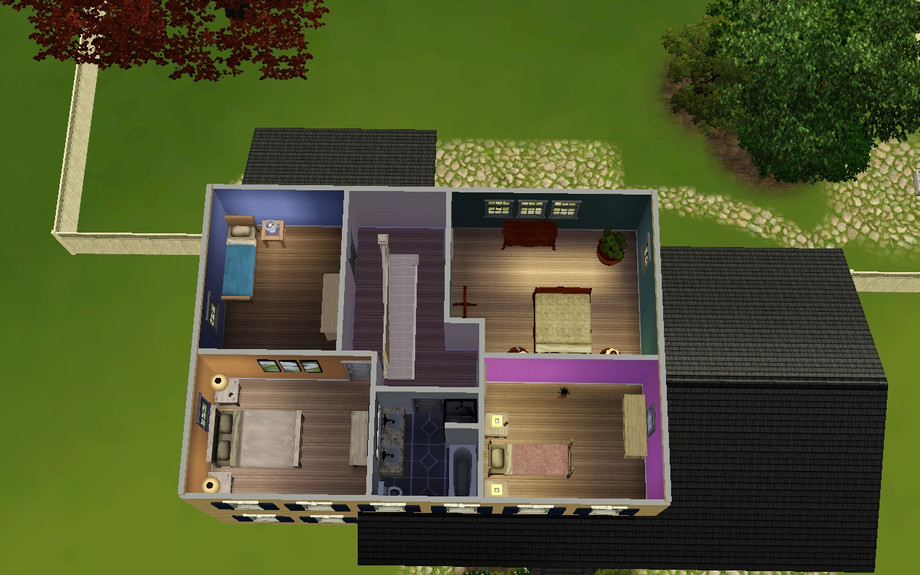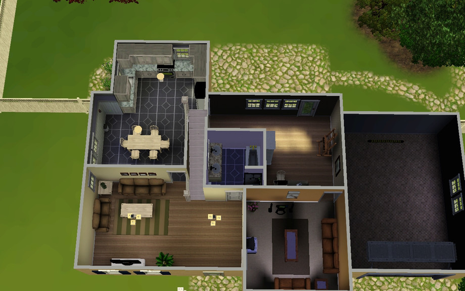FULLY FURNISHED! this great family home includes a family room, living room, office, kitchen and dining room, garage, backyard patio, mini portico, 4 bedrooms and 2 bathrooms! it is fully furnished with all of your sims's needs plus more! great home for family with up to 4 kids! has two double-bed bedrooms and 2 single-bed bedrooms! :)