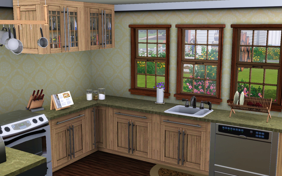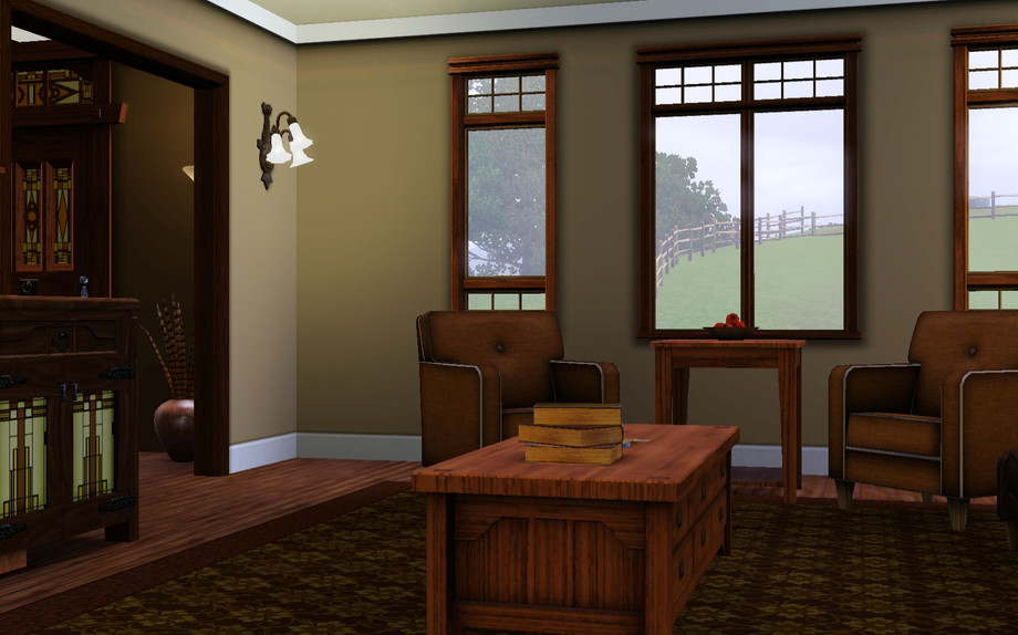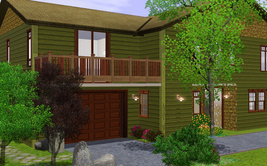 A spacious bungalow for your Sims! 3 Bedroom 2.5 bath with attached garage. Large open space upstairs, could be used as a study/den. Fully landscaped, decorated, and furnished. Features fireplace with built ins, large kitchen, and master with private deck. Enjoy!