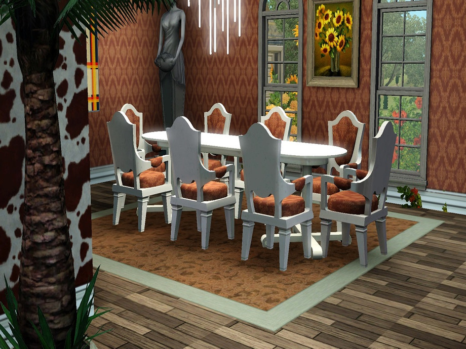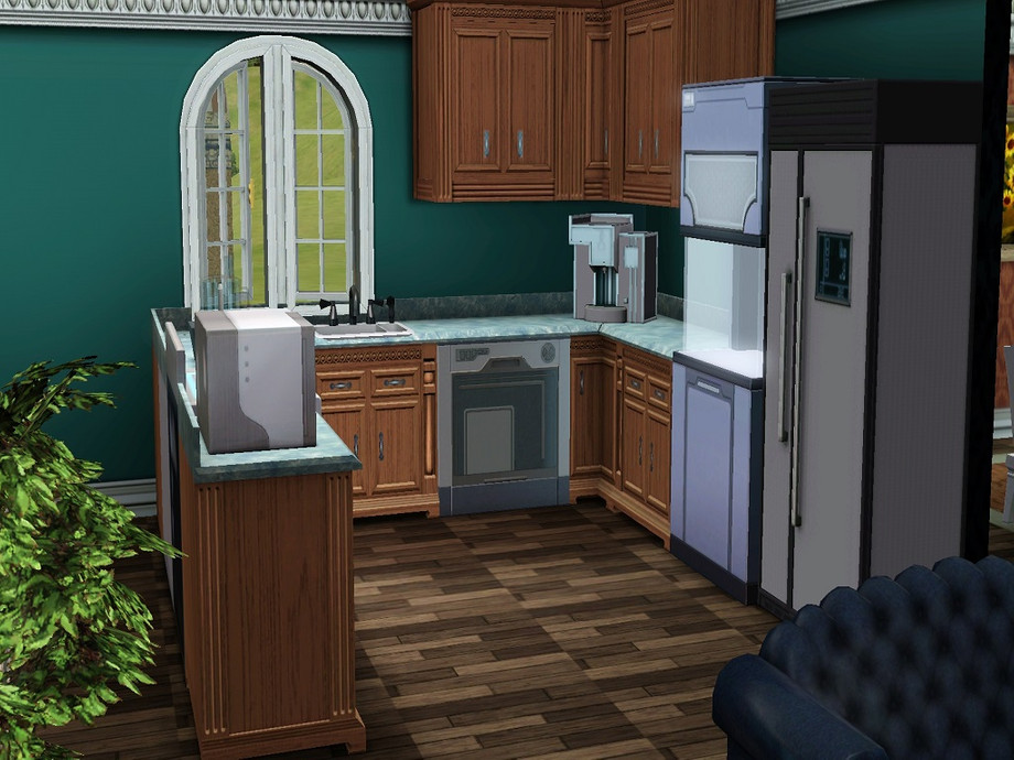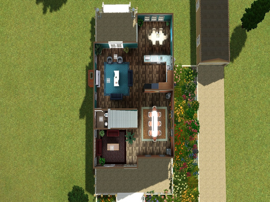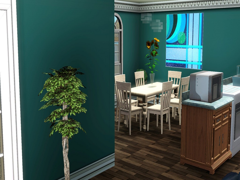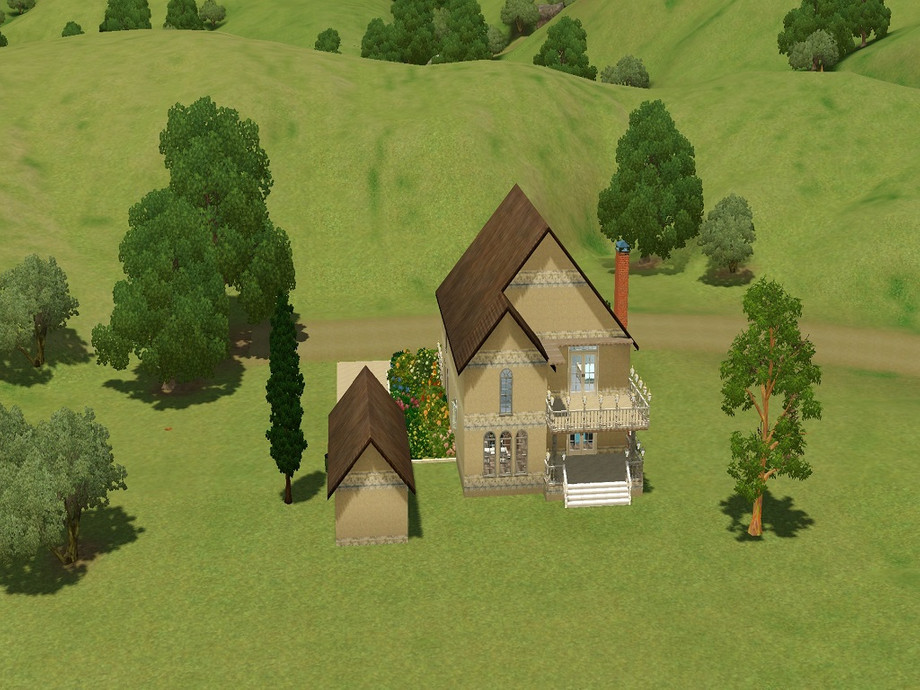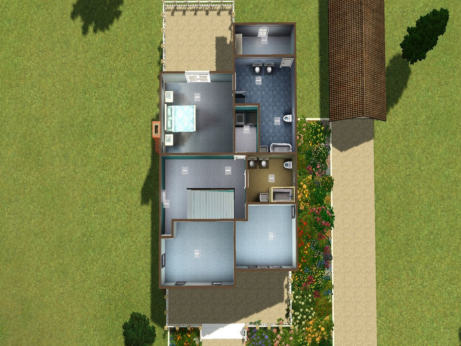 This Sim home is perfect for your Simmies! The first floor opens into a formal living room. It has a formal dining room, kitchen, breakfast nook, 1/2 bath, and family room. There is access to a large ourdoor deck from the family room and breakfast nook. The second floor has a large master suite with a large outdoor deck, a laundry room, 2 additional bedrooms and another full bath. :)