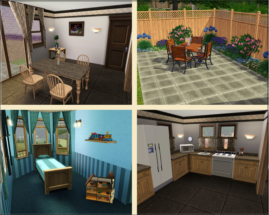 This English family home has three bedrooms, two and a half bathrooms, kitchen, separate dining room, living room, detached garage, bbq patio, garden and front driveway. There's enough parking for two cars and a bike rack. No custom content or store items used. The Lot has been fully tested.