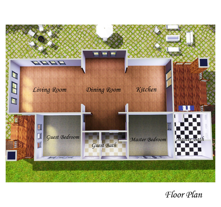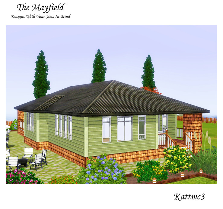 This charming two bedroom, two bathroom cottage style home is the perfect place for your small family of sims. The home includes a open floor plan, master suite and great front and back porches. I have left the home unfurnished so that you may add your own furnishings and custom content. Enjoy Kattmc3