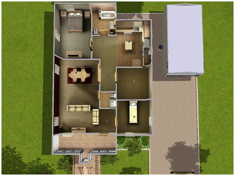 The Meyer is designed to give your Sims ultimate comfort and that ~no place like home~ feeling! This lovely home has three bedrooms, one and a half bathrooms, a one-car garage, and has an enclosed front porch. There's no better place to be than to be at home at the Meyer!