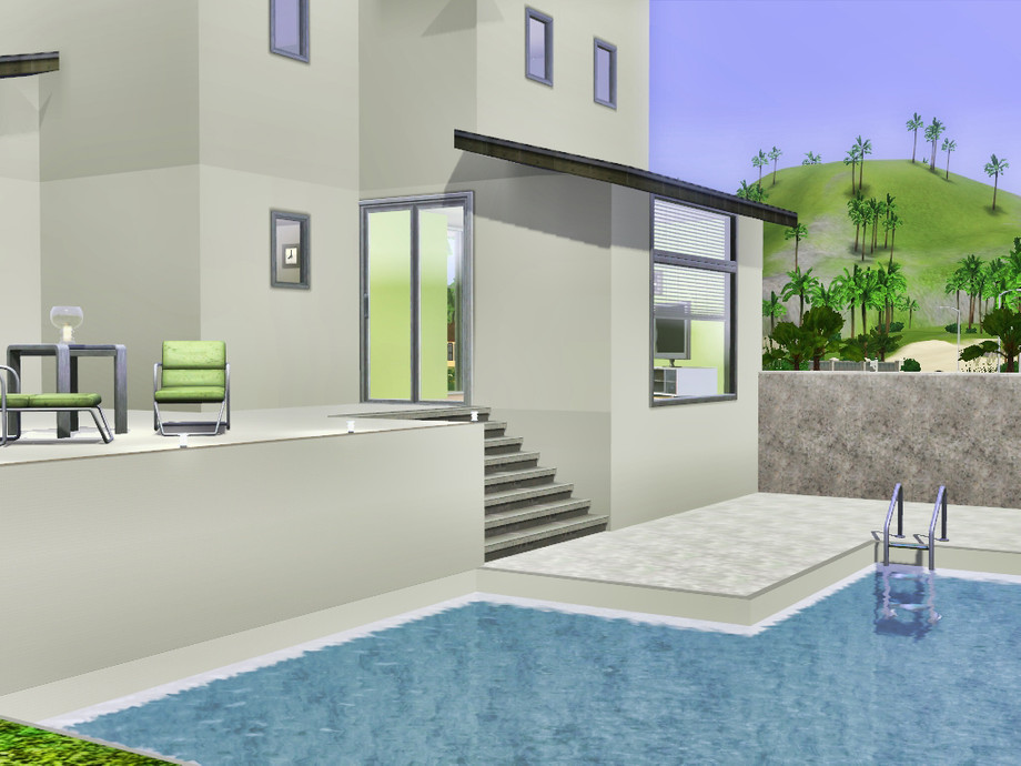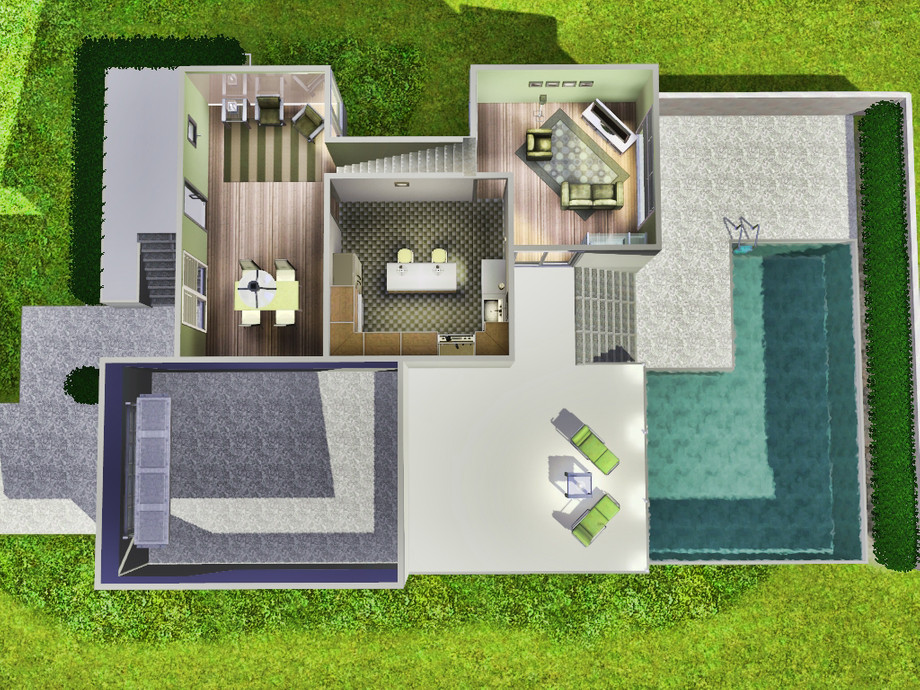 2 bedroom 1 bath modern home with attached garage and pool. Perfect for stylish sims who don't need a lot of space.
