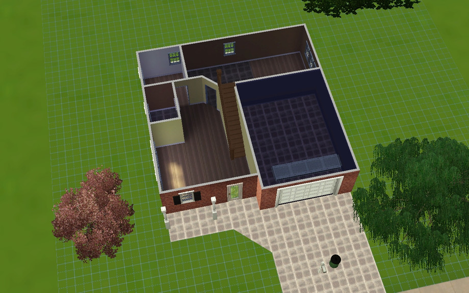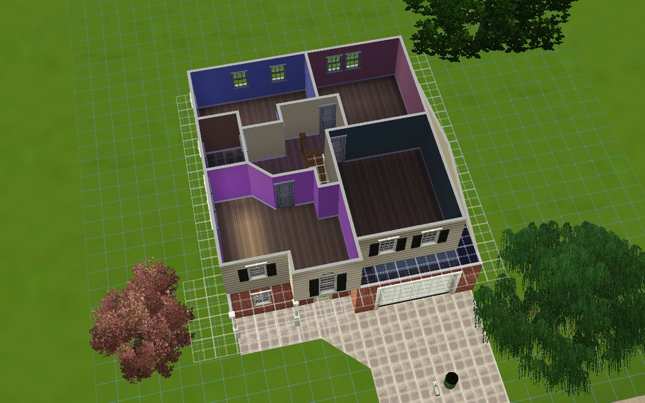 this lovely big suburban home is a fine place to raise your sims families. it has 4 bedrooms, 2 bathrooms, a garage, driveway space, a living room, connected kitchen and dining room, and a bonus room on the first floor! and by the way dont mind the mailbox and trash can in the driveway i forgot to move them ! :)