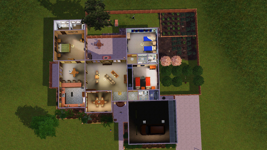 * A well developed garden which should more than defray the costs of living in such a pretentious home while provided the sims with a source of non-processed food for the food processor.