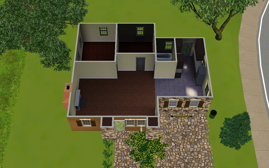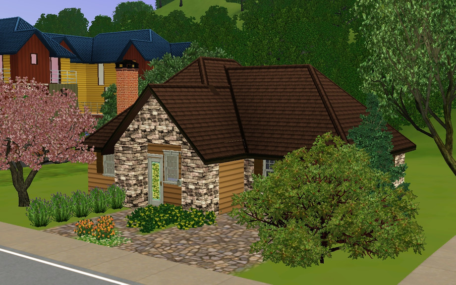 This house is part of the tiny collection! It is a quaint 2 bedroom house that has an entry area, a large living room with a fireplace, an eat in kitchen, a bathroom, and a parking space/driveway! This house is perfect for a small family or a single sim! Enjoy!