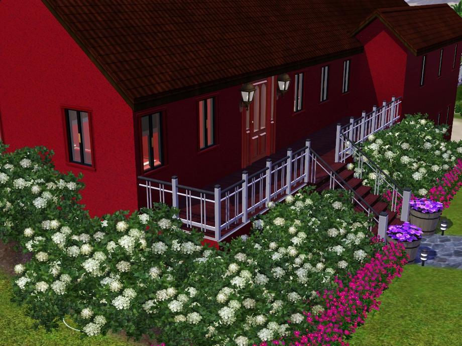 The Red Ranch is a inexpensive three-level, drive-under home with one bedroom, three bath, with a small pond (with fish) next to it; perfect for a young couple!