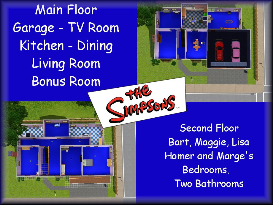 The Simspons House (or as close as I can get to it). The Simpsons are the property of Matt Groening and the Fox Network. I am not affiliated with them in any way. The house was based off watching way too many episodes of the Simpsons. I've taken an artisic license, mainly with room size, so the house isn't 100% like you see on TV. The colors are as accurate as I can make them without making the entire house too garish. I've only included a few pieces of furniture because I'm unsure of their actual placement. I hope you enjoy!