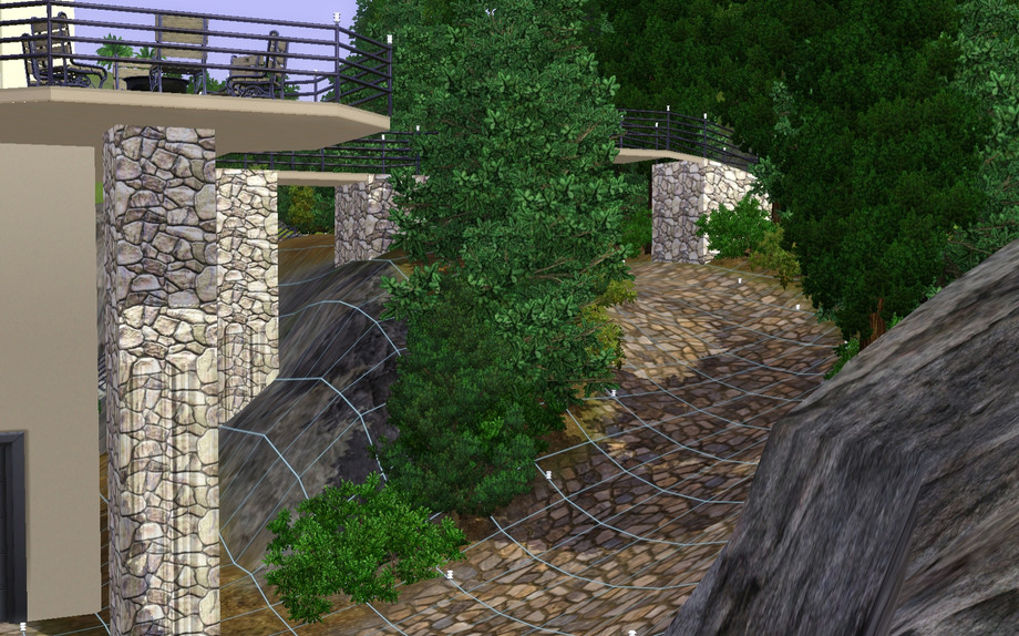 The hillside villa features 2 bedrooms sharing 1 ensuite bath. The foundation has a double garage built in and the sloped driveway down to the garage is just magnificent and one of a kind. Multiple terraces encourage outside cooking and living, yet the inside of this house provides more than enough comfort. Just don't have a fear of heights!