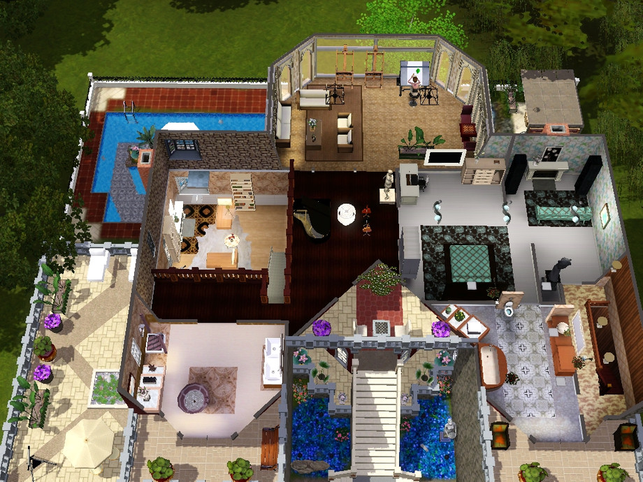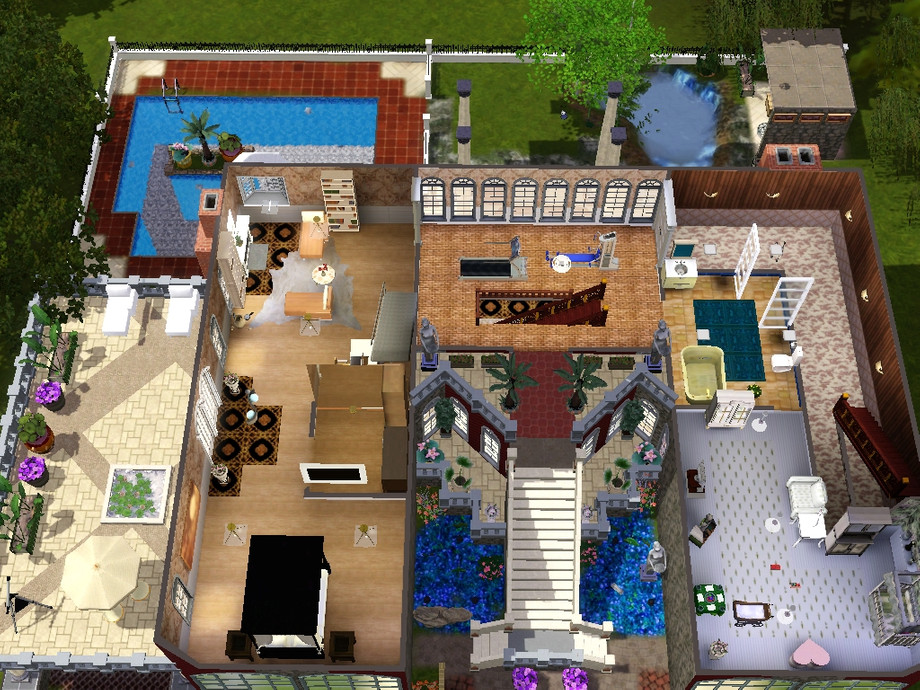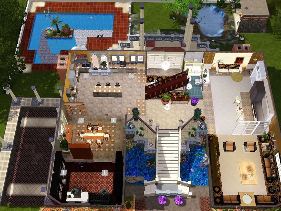 Beautiful spacious house with many rooms. Very detailed decor and great for sims with families or sims who enjoy the finer things in life. Has a beautiful pool and hang out area near it with a pond. This house has 3 bed rooms and 4 bath rooms. Enjoy!