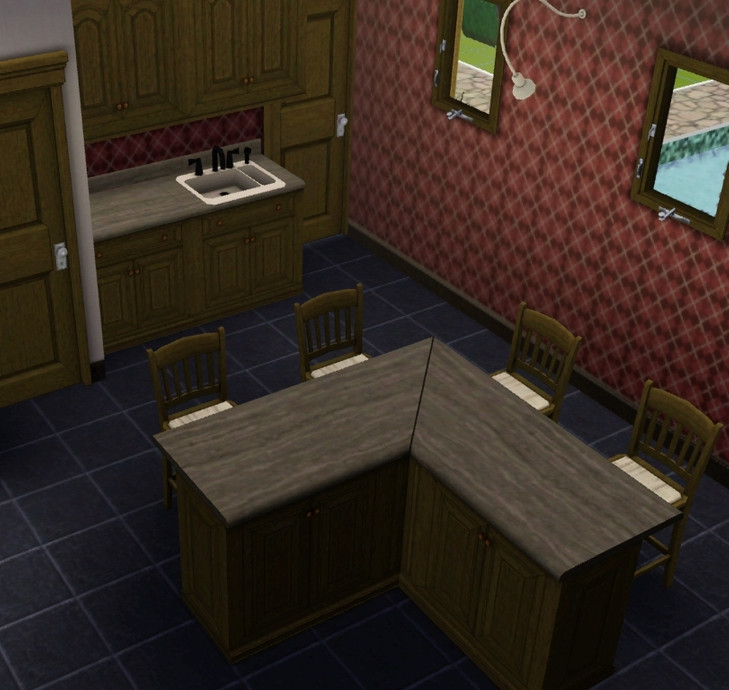 Some objects have been placed using moveObjects on but any areas that are messy have been hidden or are inaccessible to Sims.