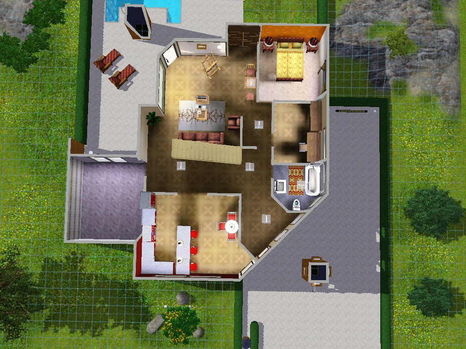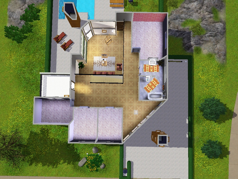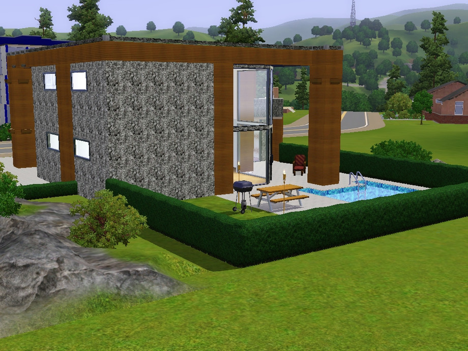 Large house for a large family. 6 bedrooms, 2 bathrooms, kitchen with breakfast and dinning-area, living-room, bureau, balcony, garden with pool and a place for the car. The house is partly furnished and decorated. Enjoy Special thanks to Luna from simsLulamai.net for the small 2-titled windows and MTS for the simpleKitchen. Most ot the patterns by me.