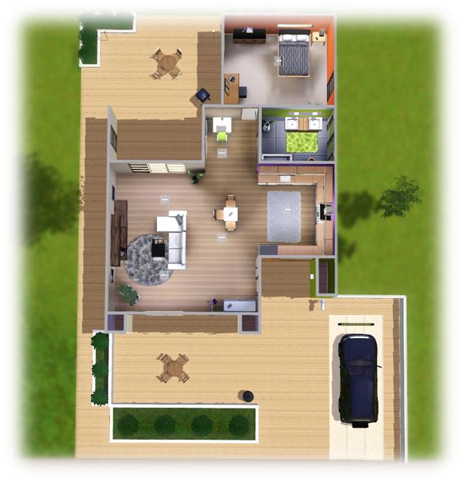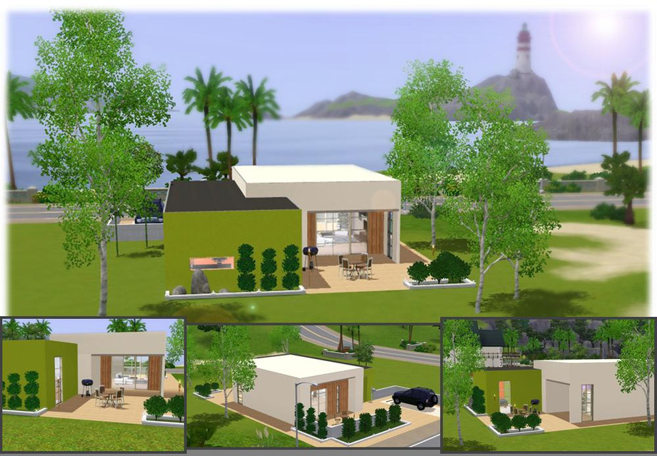 If you're into modern architecture this house is perfect for you. It is designed for a rich couple or a single sim. This fully furnished and decorated home has a modern and spacious livingroom, kitchen with dining area, 1 bedroom and 1 bathroom. Outside there is a place to sit and relax or have a bbq. There is also a place for your car. The house is ready to move in! Enjoy!