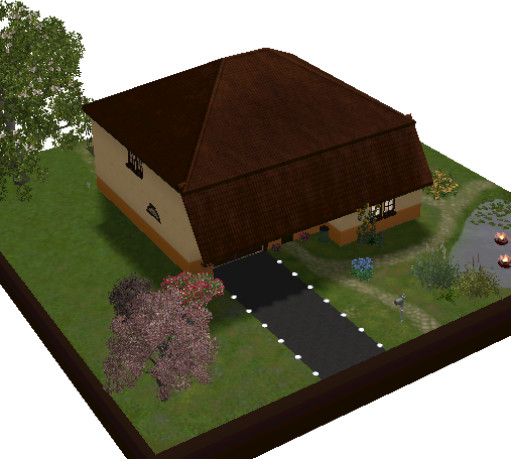 Luxorious house with a beautiful garden in the back, where you cand take dinner with family and friend. The house has two levels. In the right of the entrace is a small bathroom,the living room,dining room and the kitchen, and at the left of it there is the garage and the laundry room. At the second floor there are three bedrooms and a large bath! I used only main game items so there is no mesh nedeed. Hope you like it...enjoy!
